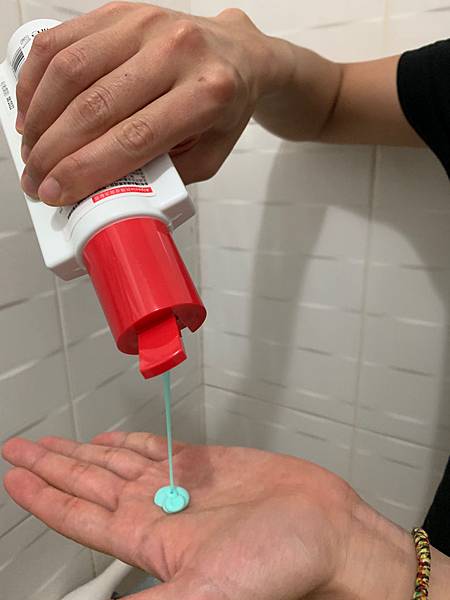 擠出來以後會看到薄荷綠顏色的洗髮露