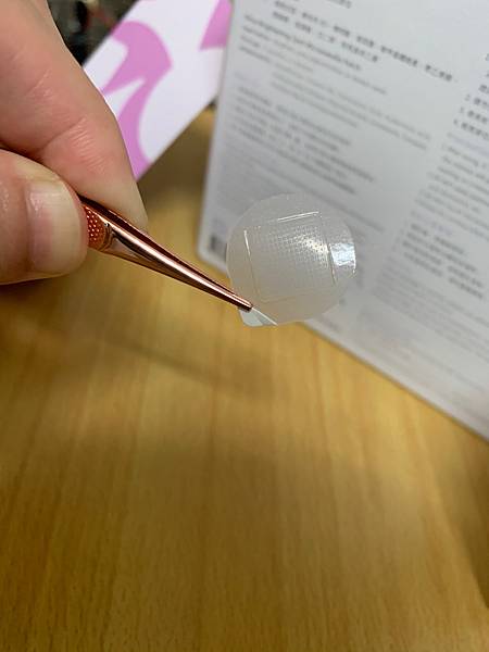 將外圍的保護片撕開後可以清楚看到貼片上像顆粒狀整齊排列的的微針