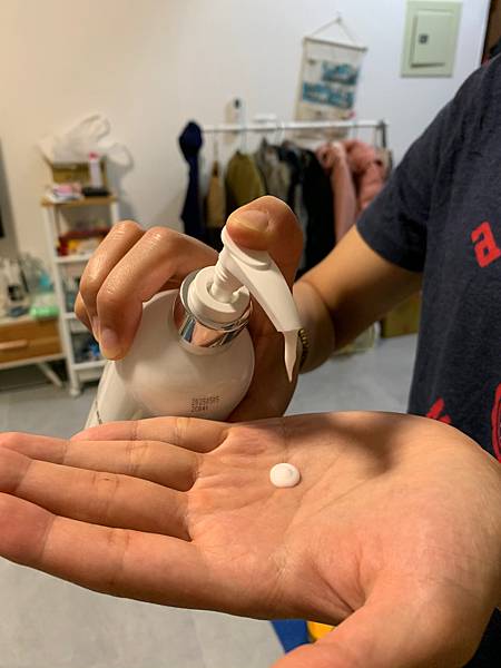 在沐浴後,肌膚呈現半乾的狀態時,取適量於手心中搓揉