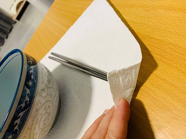 有時候吃飯我會也會習慣墊一張廚房紙巾在下面