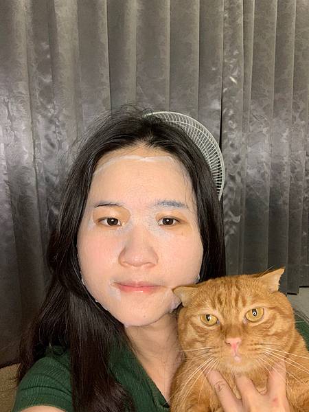 敷面膜的空檔,當然抓我家貓貓來合個影
