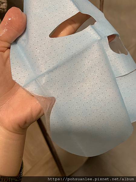把面膜仔細一看才發現中間這層像絲狀的面膜才是!!!藍色是支撐膜(讓他面朝外,等等要撕下來的)