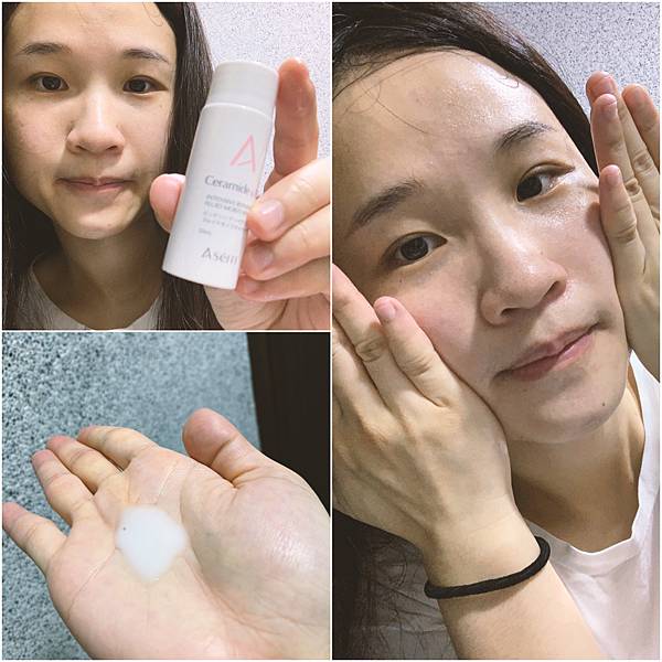 塗抹於臉上為乳狀質地,但很水很好吸收,塗抹起來一點也不黏膩